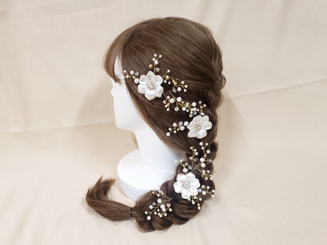 乙女チックなスプリングカラーが華やかに彩ってくれます。 17個のパーツでボリューム満点◎ 成人式だけでなく、浴衣やウェディングにもオススメ。 商品番号【SG-11】