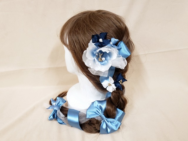 ツヤ感のあるお花とリボンを使ったアレンジ豊富なパーツセット。同系色でまとめトレンド感アップ。 商品番号【4612】