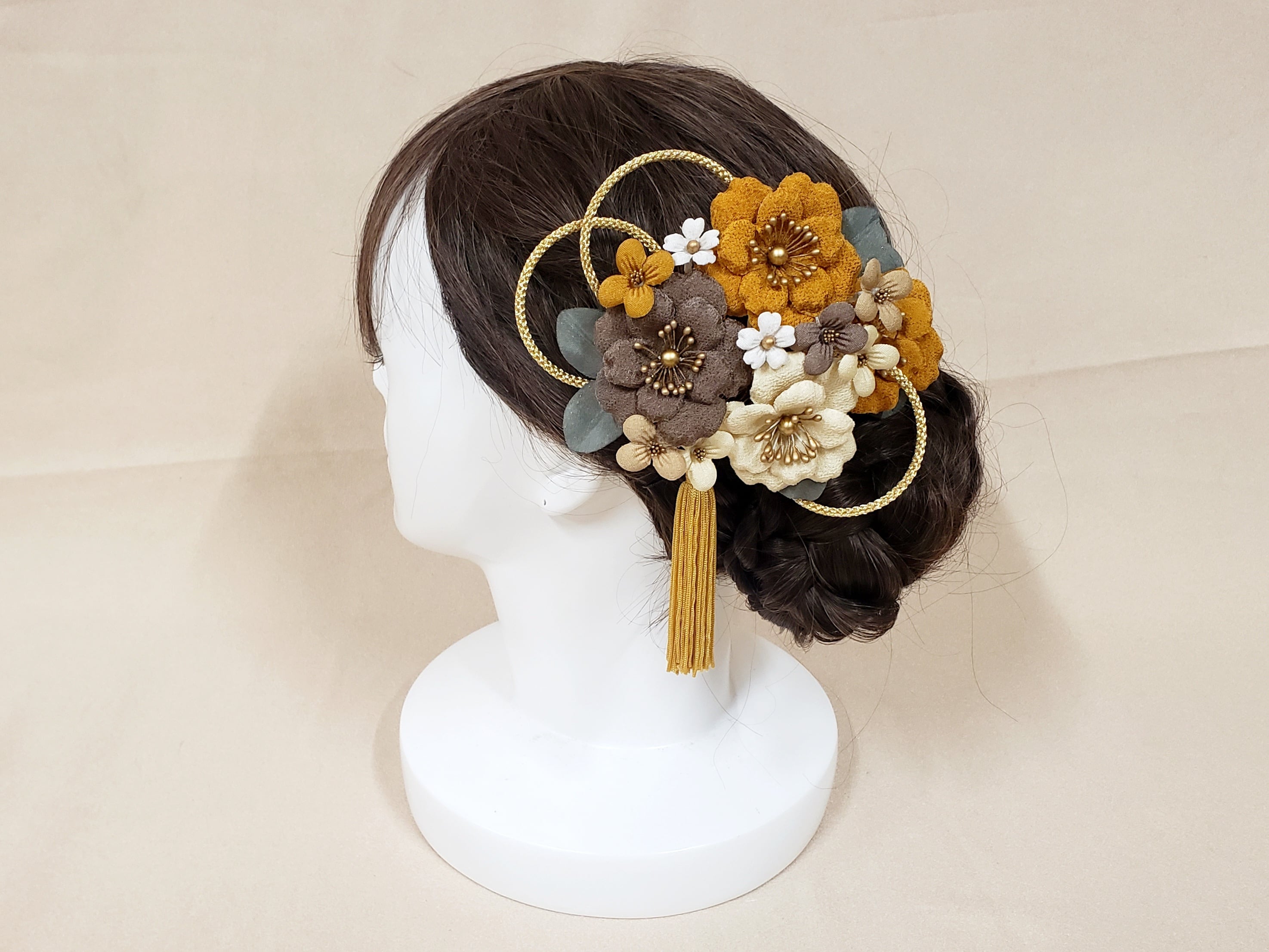 初春の訪れを感じさせる梅を大正レトロなカラーリングで仕上げた、気品ある髪飾りです。 商品番号【4619】