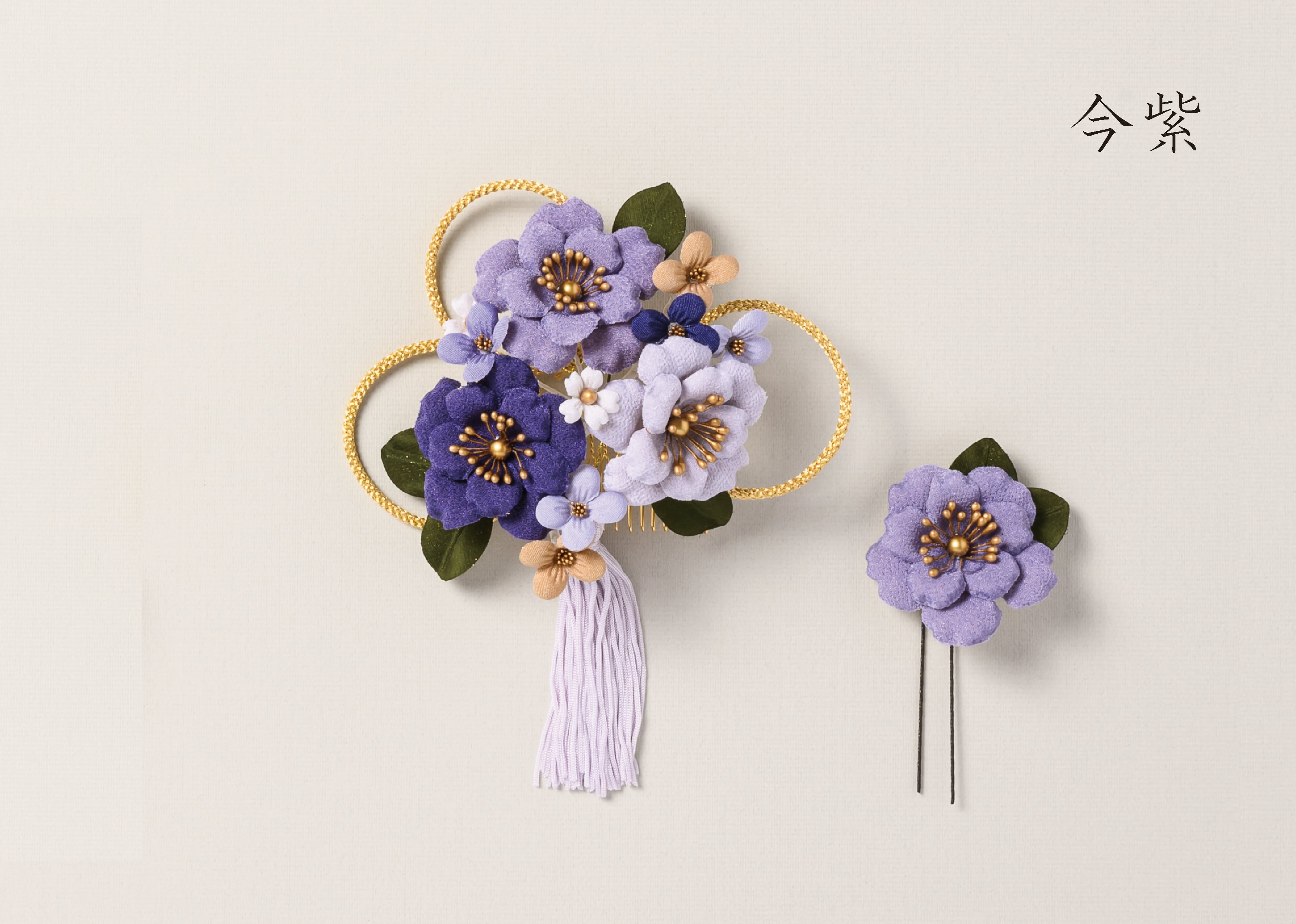 初春の訪れを感じさせる梅を大正レトロなカラーリングで仕上げた、気品ある髪飾りです。