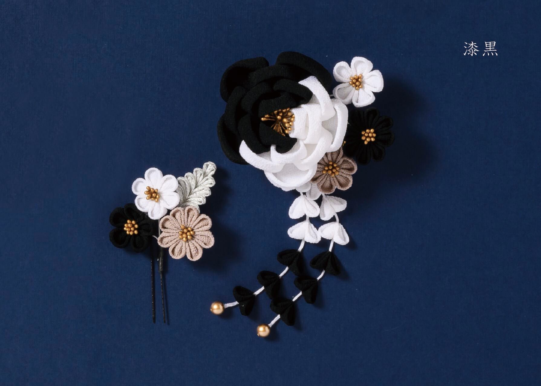 椿をバイカラーにすることで、定番モチーフに新しい魅力をプラス。ふっくらとしたシルエットが可愛らしい髪飾りです。