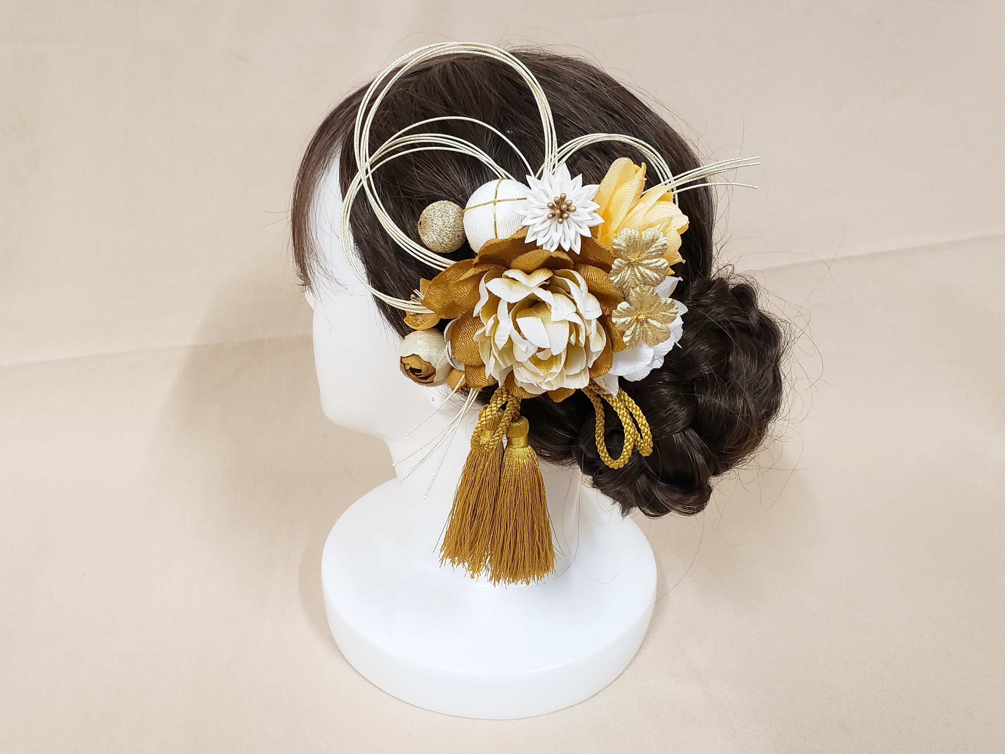 大人気の牡丹がモチーフの髪飾り。 同系色のくすみカラーで落ち着いた雰囲気に仕上げました。 商品番号【4617】